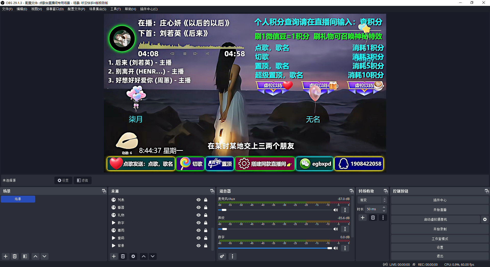 第四步:打开OBS直播软件,自助点歌台直播素材,如下图所示
